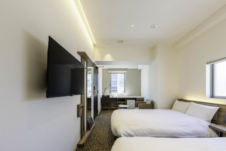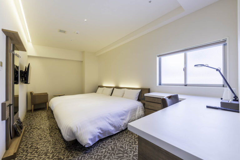 デラックスツイン 広々とした空間でゆったりとくつろげるデラックスツインルームは、特別なご滞在を求める方に最適です。ダブルベッド2台を備え、ご友人やご家族とのご宿泊にもぴったり。洗練されたインテリアと落ち着いた雰囲気が、旅の疲れを癒し、心地よいひとときを演出します。 詳細はこちら