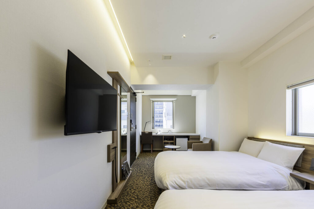 スタンダードツイン シングルベッドとセミダブルベッドを備えたスタンダードツインルームは、ビジネスや一人旅はもちろん、ご友人やご家族とのご宿泊にもぴったりの空間です。洗練されたデザインの室内は、ゆったりとくつろげる落ち着いた雰囲気。自由なスタイルでお過ごしいただけます。 詳細はこちら