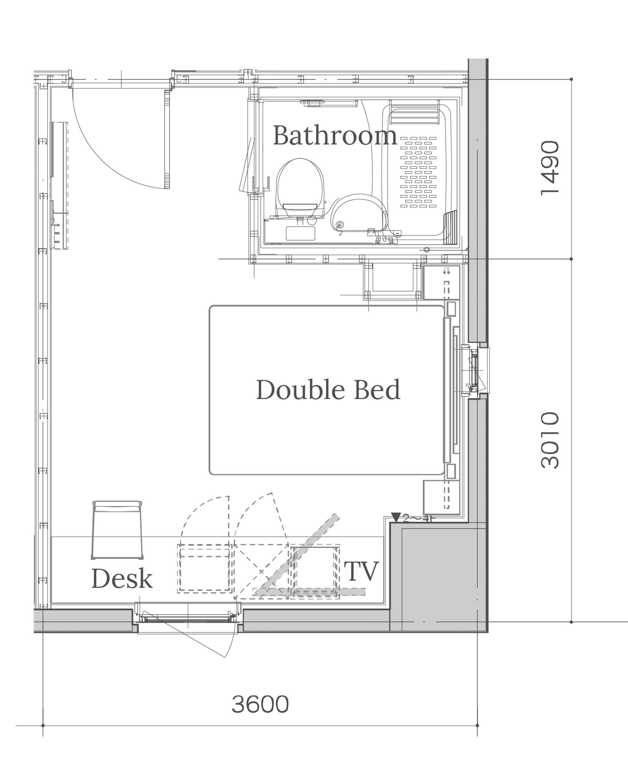 長崎の魅力を満喫する拠点として、快適にお過ごしいただけるスタンダードダブルルームをご用意しております。シンプルで落ち着いたデザインの室内には、ゆったりとしたダブルベッドを配置し、お一人様でも贅沢な時間をお楽しみいただけます。