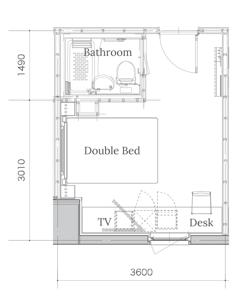 無料Wifi/ 洗浄付トイレ/ 浴室/ シャワー/テレビ(Netflix・YoutubeなどのVODあり)/ 湯沸かしポッド/ 冷蔵庫/ ドライヤー/ 歯ブラシセット(他のアメニティはフロント横のアメニティーバーにご用意しております)/ 館内着/ スリッパ