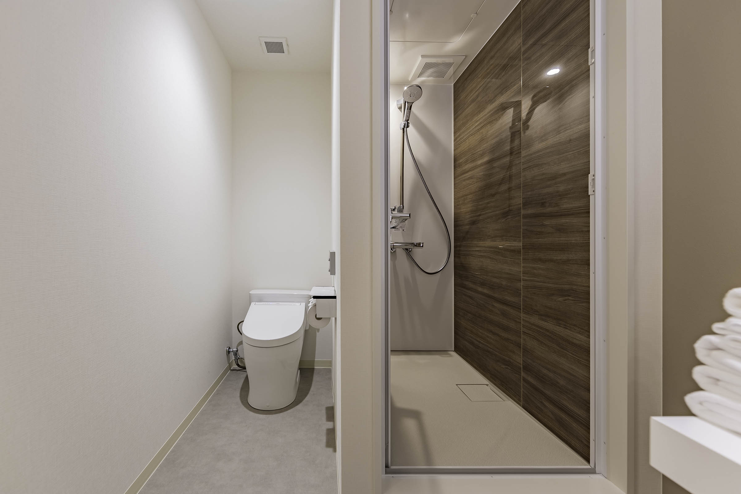無料Wifi/ 洗浄付トイレ/ シャワー室/テレビ(Netflix・YoutubeなどのVODあり)/ 湯沸かしポッド/ 冷蔵庫/ ドライヤー/ 歯ブラシセット(他のアメニティはフロント横のアメニティーバーにご用意しております)/ 館内着/ スリッパ