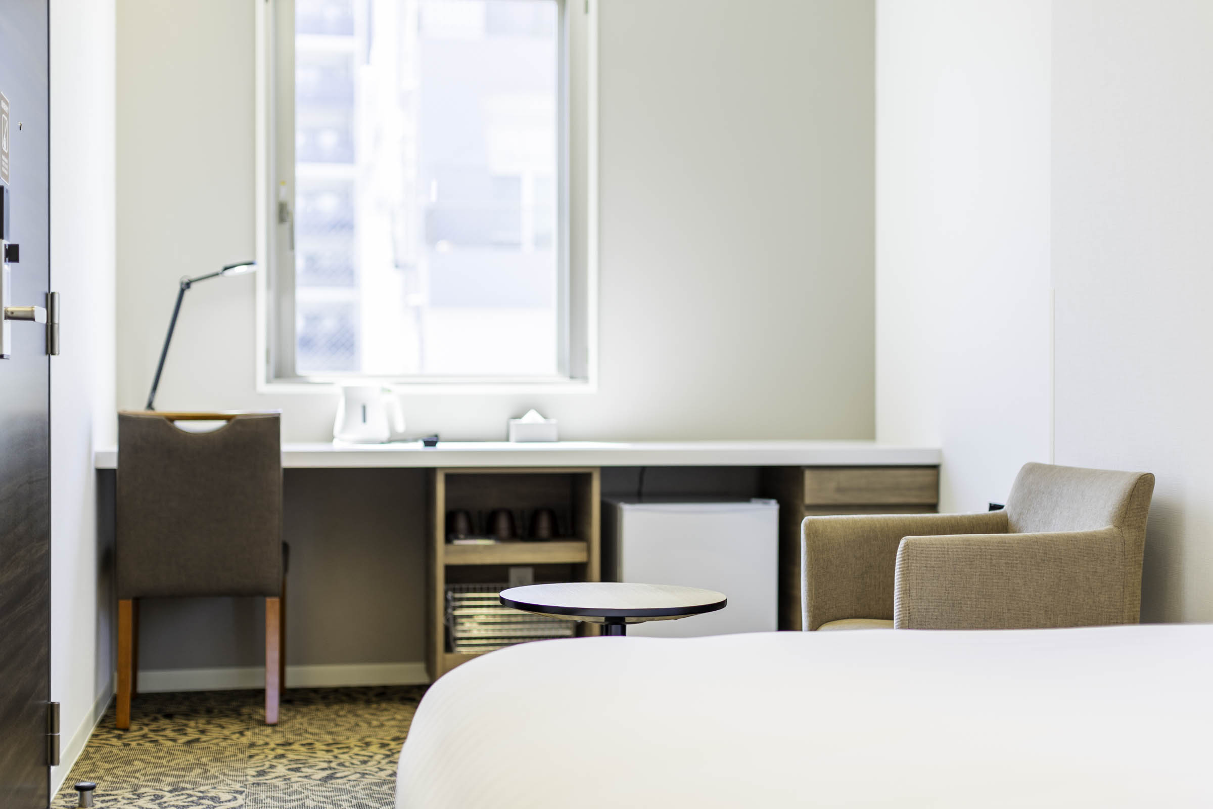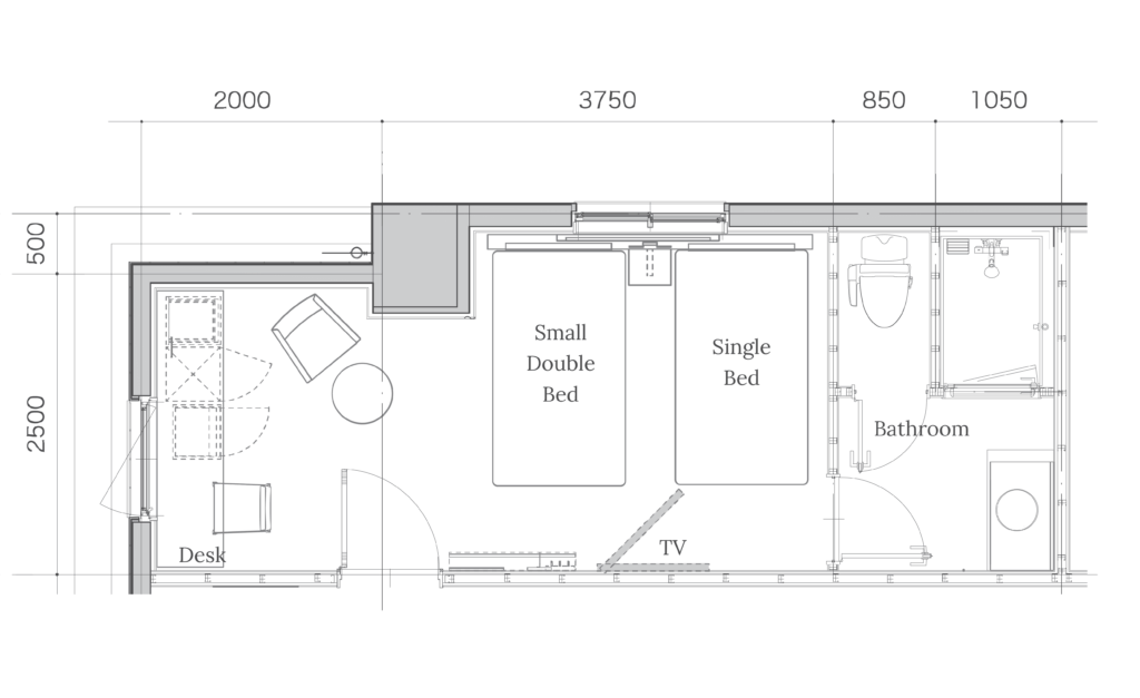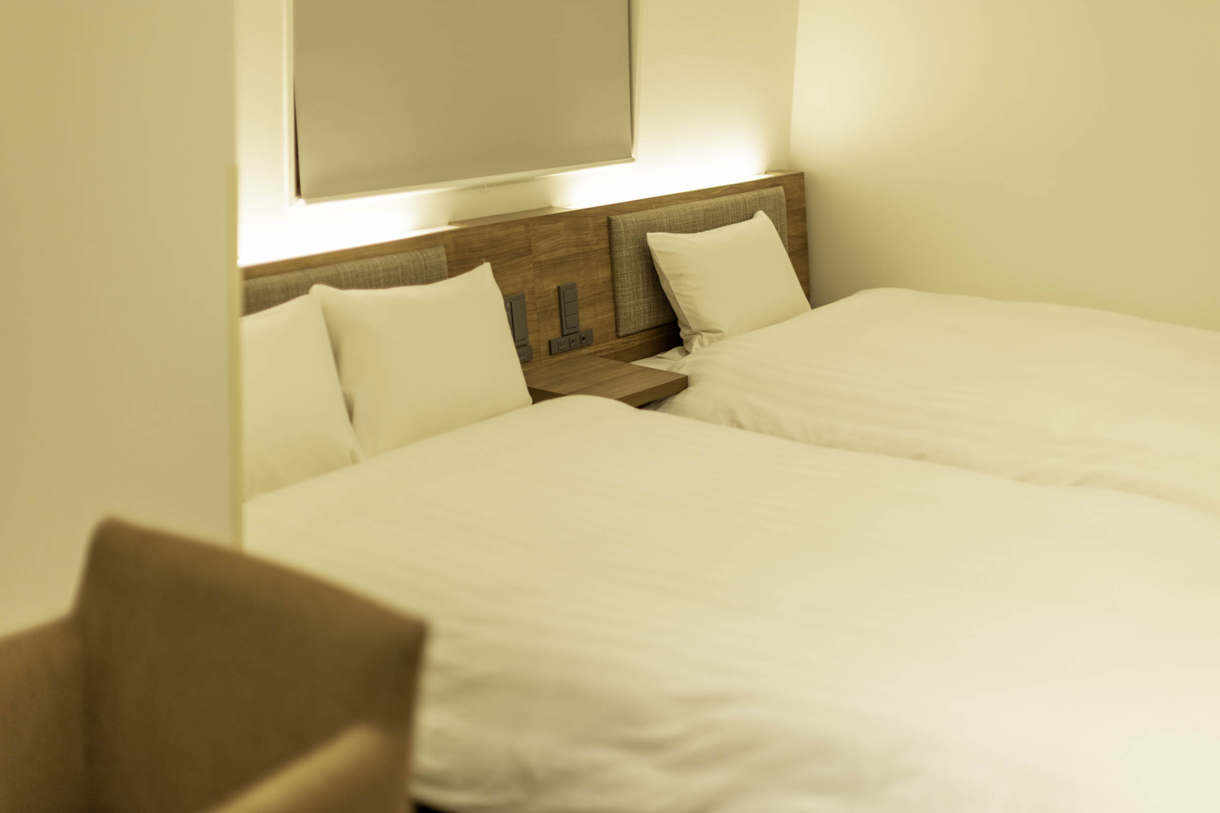 シングルベッドとセミダブルベッドを備えたスタンダードツインルームは、ビジネスや一人旅はもちろん、ご友人やご家族とのご宿泊にもぴったりの空間です。洗練されたデザインの室内は、ゆったりとくつろげる落ち着いた雰囲気。自由なスタイルでお過ごしいただけます。